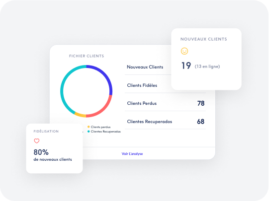 Dans cette section, vous pouvez analyser le nombre de nouveaux clients, l’indice de résiliation, la fidélisation et la fréquence de retour. Il est également possible de suivre le taux de retour des clients perdus et la fréquence des visites client (pour comprendre quand le salon est le plus performant et grâce à quelles prestations ou offres).